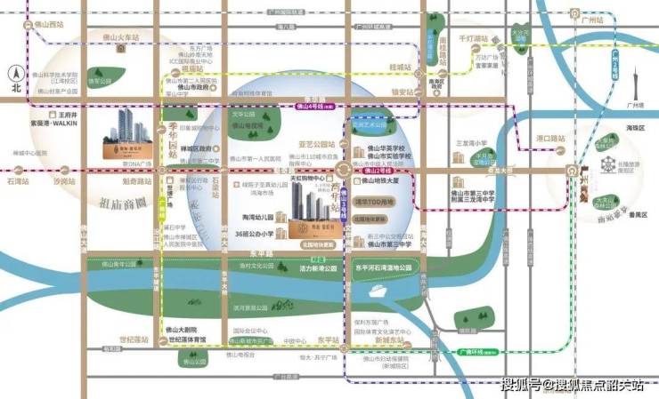 湾华TOD对标广州珠江新城打造为佛山主城新封面,以地铁2、3号线交汇的湾华站为核心,构建超1/2平方公里、坐拥千亿产业配套的TOD都会超体。