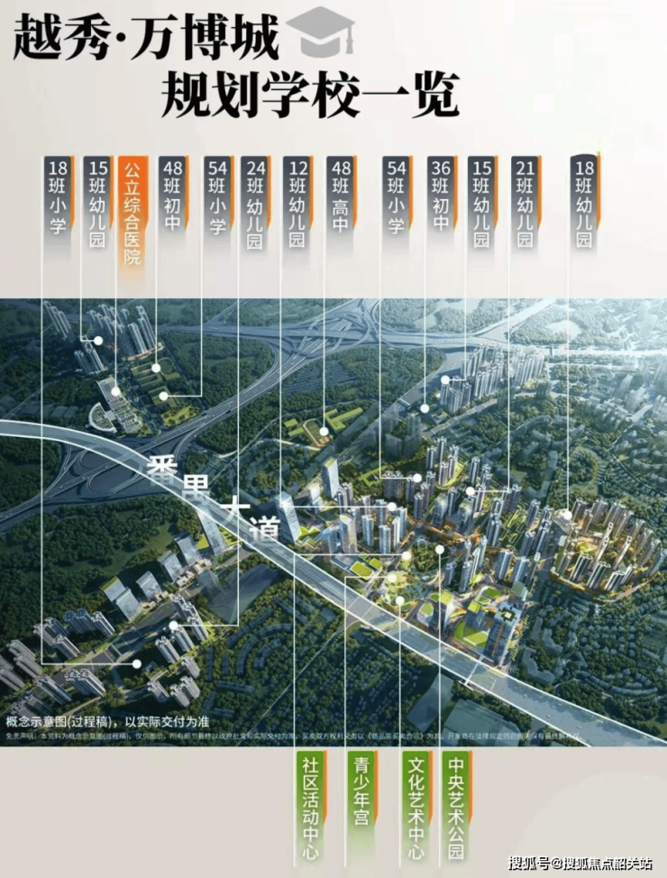 配建12所学校:项目规划6所幼儿园、3所小学、2所初中、1所高中,形成完整教育链。其中,CBD组团内的54班小学和36班初中已官宣引入番广实验教育集团办学,由广大附中番禺实验学校具体管理。