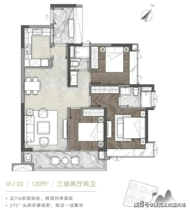 目前在售A组团主力户型涵盖120㎡、140㎡、180㎡及190㎡四大面积段,均为南北通透、全明格局设计。120㎡三房适合年轻家庭起步置业;140㎡四房兼顾舒适与实用;180㎡以上大平层则以LDK一体化、双主卧套房、超大观景阳台等设计,诠释塔尖生活的从容气度。所有户型均实现对白云山景观的最大化收纳,真正做到“推窗见绿,开门迎山”。