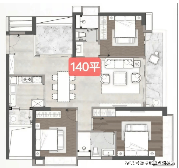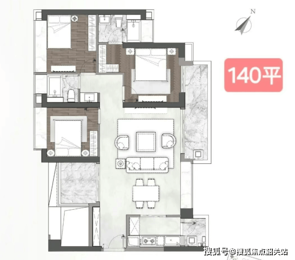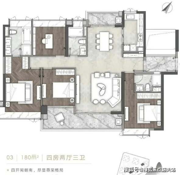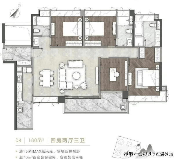 项目采用豪宅级精装标准,甄选国际一线建材品牌,配备全屋PM2.5净化新风系统、VRV中央空调、智能家居控制系统等高端配置,细节之处尽显匠心。无论是120㎡的精致三房,还是180㎡的奢阔四房,均以约80%的高得房率最大化空间实用性,满足不同家庭结构的居住需求。