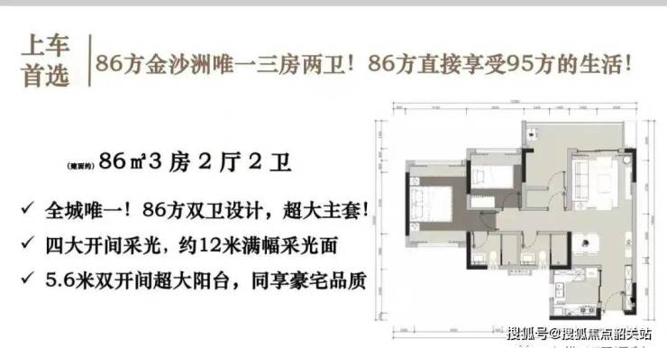 全部采用创新王牌户型,将客厅、餐厅、厨房、阳台四大公区融为一体,提升空间的社交互动功能。86 平三房两厅两卫为竖厅设计,约 5.6 米大阳台;95 平三房两厅两卫阳台开间达 4.5 米;115 平四房两厅两卫带 6.6 米大阳台,户型设计实用且舒适。售楼处电话:400-622-0051