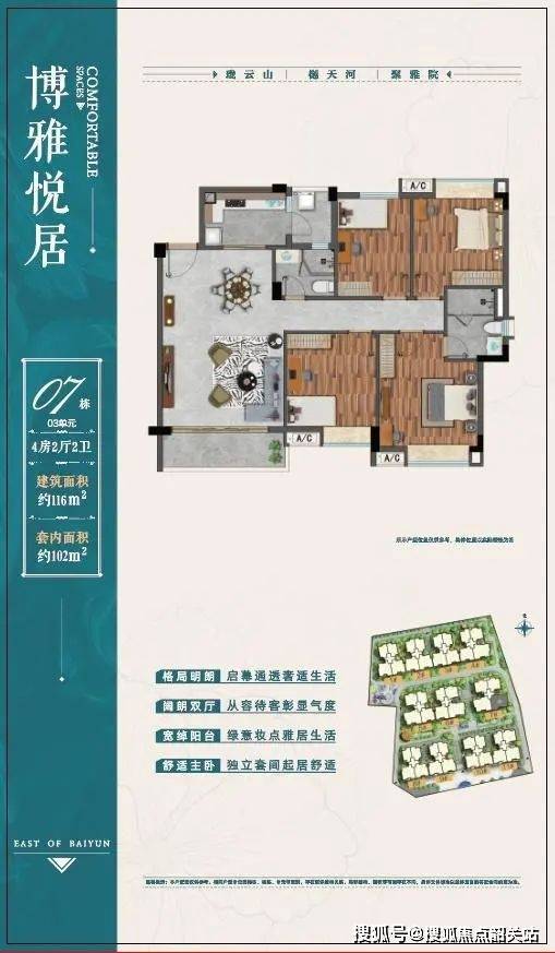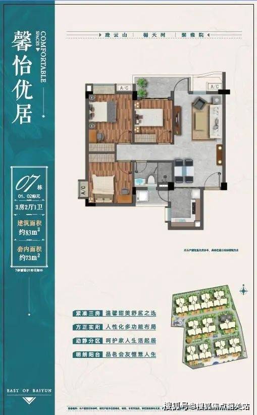 精筑建筑面积约64-119㎡稀贵五层低密小洋楼,双阳台设计,打造无差别对流,每天共享阳光与清风的轻抚,谱写诗意理想家。