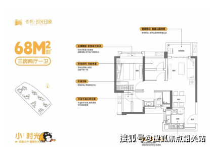 保利时光印象推出的户型为建面约 68-115㎡的三至四房。其中,建面约 68 平方米的三房一卫户型,是低总价的上车稀缺户型,相比市场上同等功能三居室的户型单位,至少节省了 10 个平方米,为买家省下一半的首付金额。该户型还有 + 1 房高拓空间,可打造多功能房。建面约 85 平方米的三房两卫户型,南向园林景观,四开间朝南,超宽楼间距视野开阔,采光通透舒适性高。建面约 115 平方米的四房两卫户型,超 6 米奢阔阳台,可将小区园林景观尽收眼底,U 型厨房科学布局,客餐厅一体化,南北通透,主卧中的 270° 全景飘窗,让生活更加惬意。