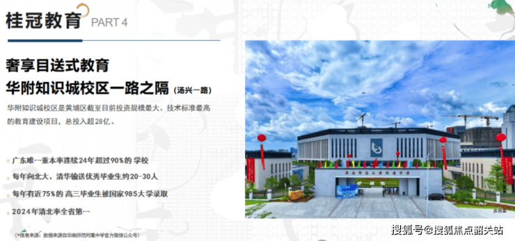 教育资源是广开云翰的一大亮点。项目与华附知识城校区仅一路之隔,直线距离约 100 米。华附知识城校区是黄埔区投资规模最大、技术标准最高的学校,2023 年已正式招生。