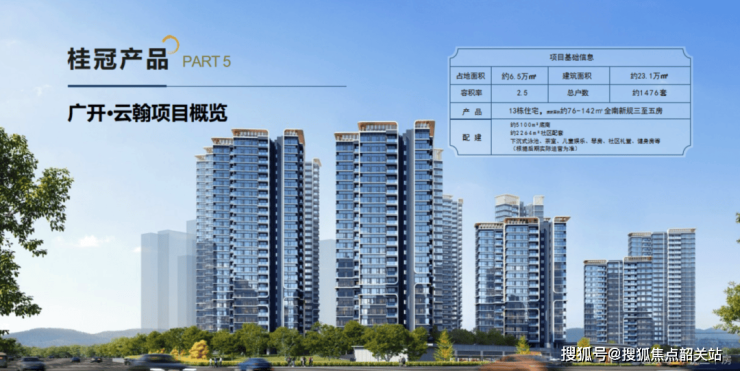 广开云翰总建面约 23.1 万㎡,容积率 2.5 ,规划建设 13 栋住宅,产品涵盖约 76 - 142㎡的全南 “新规” 三至五房户型,总户数约 1476 套。项目配建约 5100㎡底商和约 2264㎡社区配套。