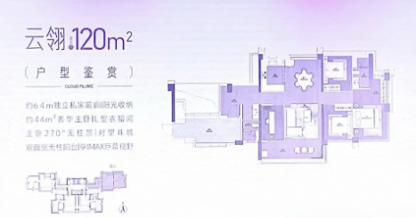 越秀東山云起所有户型均为南向四房,最小户型98平方米,最大户型139平方米。得益于超新规产品设计,得房率高达120%-130%,极大地提高了空间利用率。每个户型都经过精心设计,注重采光和通风效果,力求为住户提供最舒适的居住体验。特别是其阳台占比可以达到20%,使得使用率超过100%,这在广州市场中极为罕见。