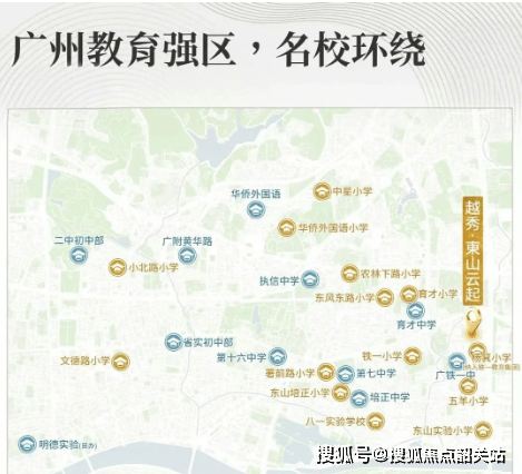 越秀東山云起对口杨箕小学,该校为铁一教育集团成员之一,共享教研资源,升学路径有望进一步向铁一中学倾斜。根据越秀区小升初电脑派位分组,对口初中均为传统名校,如广东省实验中学、铁一中学和培正中学等。这些学校均有着优异的教学质量和深厚的教育底蕴,确保了孩子从小学到初中都能享受到优质的教育资源。