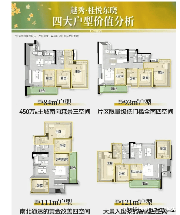 项目主打四大户型,均以“高实用、强功能、优朝向”为核心: