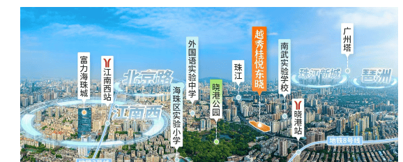 越秀·桂悦东晓已明确配建并官宣对口海珠外国语实验中学附属小学(简称“海实附小”),该校依托海珠实验中学优质资源,教学理念先进,近年口碑持续攀升。周边2公里内更聚集万松园小学、滨江东路小学、昌岗东路小学(千禧校区)等海珠第一、第二梯队公办名校,初中则可参与广州五中、南武中学、海珠实验中学等优质学校的摇号派位——其中广州五中近年中考成绩稳居全市前十。密集且高质的教育资源,让项目成为重视子女教育家庭的理想选择。