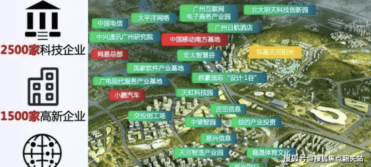 项目位于天河智慧城、天河智谷黄金交汇点,处于广州第三中轴之上,是天河战略性新兴产业聚集地,也是湾区战略创新极核的重要组成部分。这里汇聚了4000家IAB科技企业,网易总部、小鹏汽车、中国移动等知名企业早已进驻,片区内已有约2500家科技企业、约34家总部企业,八大优势产业集群,生产总值超千亿,虹吸30万+高精尖人群。