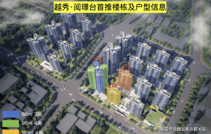 越秀•阅璟台总占地约7.95万㎡,建筑面积约11.16万㎡,低密度2.1容积率规划,21栋住宅中板楼15栋、塔楼6栋,梯户比合理。板楼设计三面采光、专梯入户,塔楼采用2梯4户设计,户型灵活,兼顾舒适性与实用性。