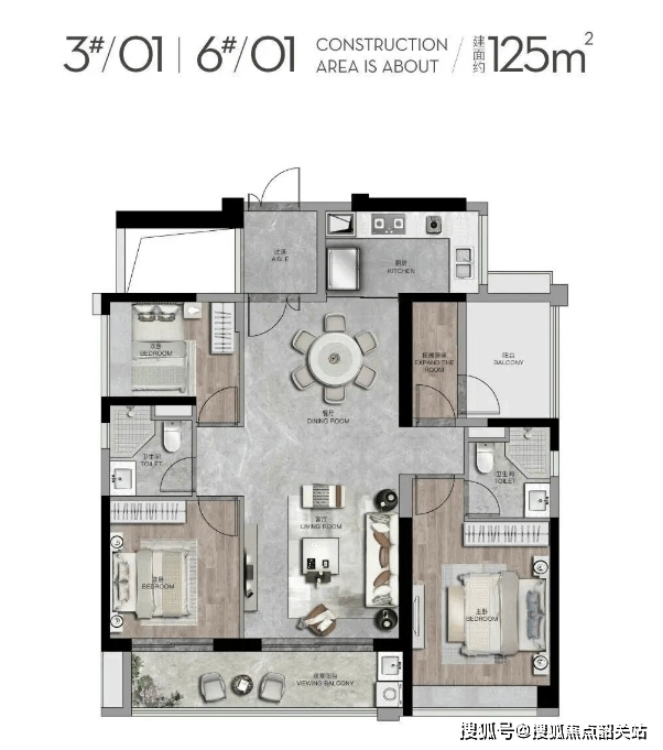6. 户型设计怎么样?105-140㎡三至四房,兼顾实用与奢适