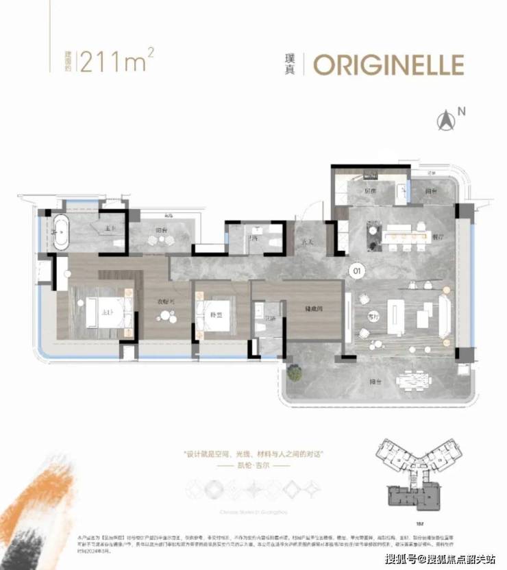 约220㎡新派科技豪宅:两梯两户、南北对流,尽享南北双园林景观。