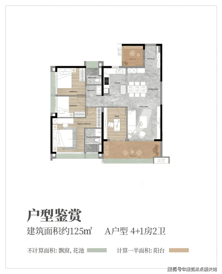 建面约125㎡四房户型:主打一线云山景观,是白云山豪宅圈唯一不超过144㎡豪宅面积线的无遮挡云山景观产品。270°无遮挡视野面,楼王气质凸显,在家即可尽享白云山全景。户型布局合理,四开间朝南,全明通透;双阳台设计,观景与生活功能分离;主卧带独立衣帽间与卫生间,提升居住品质;灵动空间可根据家庭需求改造,满足多元居住需求。