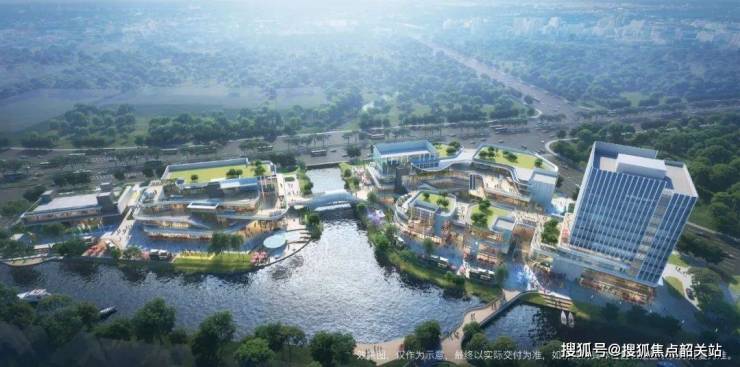 现成的万达广场、合生广场,楼下南侧自建滨水商业体。