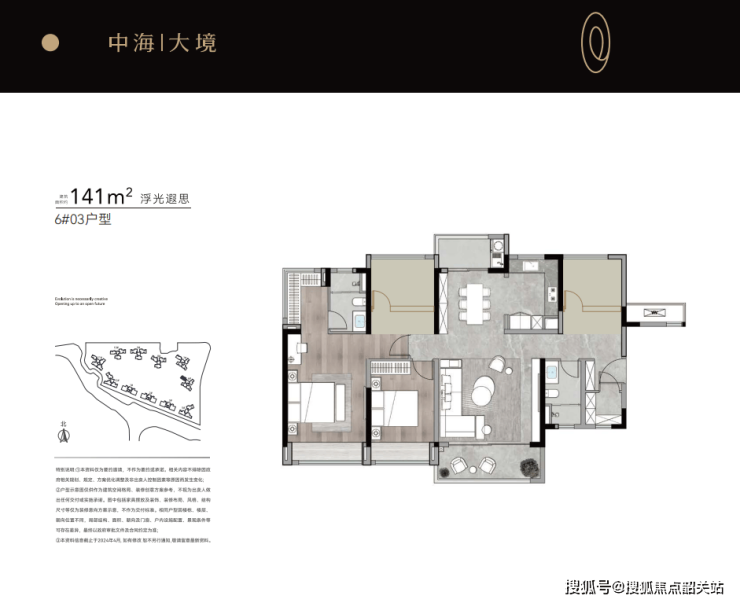6栋03户型与首推的10栋02户型一致,南北双阳台+四开间朝南,仅有34套。