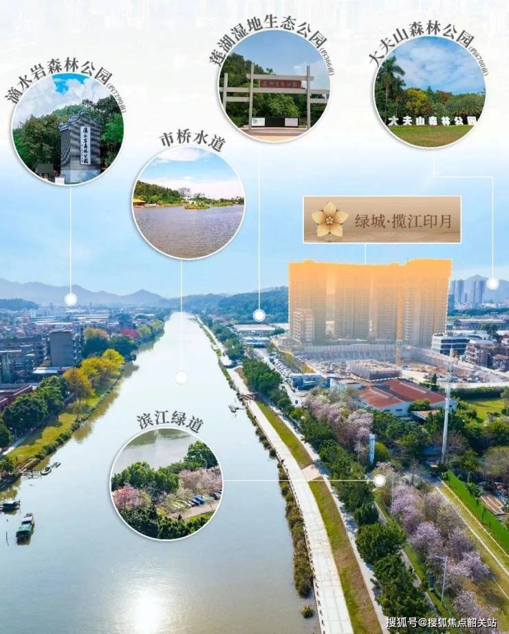 项目位于广州市番禺区市桥板块,处于大夫山森林公园、莲湖湿地公园和滴水岩森林公园三大生态公园交汇处,享有近40%的绿地覆盖率和超过10000/cm³的负氧离子浓度,营造出一个天然的绿色氧吧。紧邻市桥水道,推窗即可欣赏到一线江景,同时靠近番禺广场和万博CBD等核心商圈,实现了生态与城市便利性的完美结合。