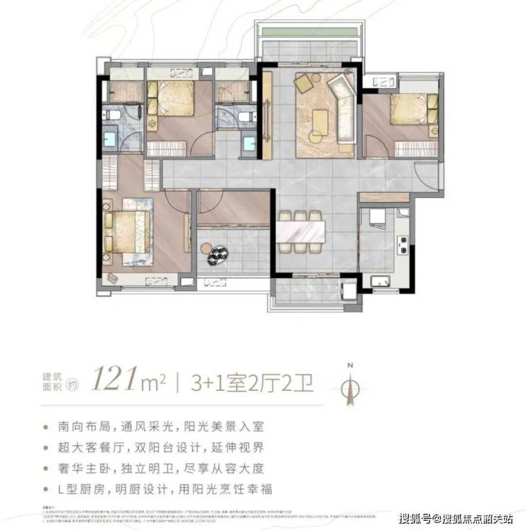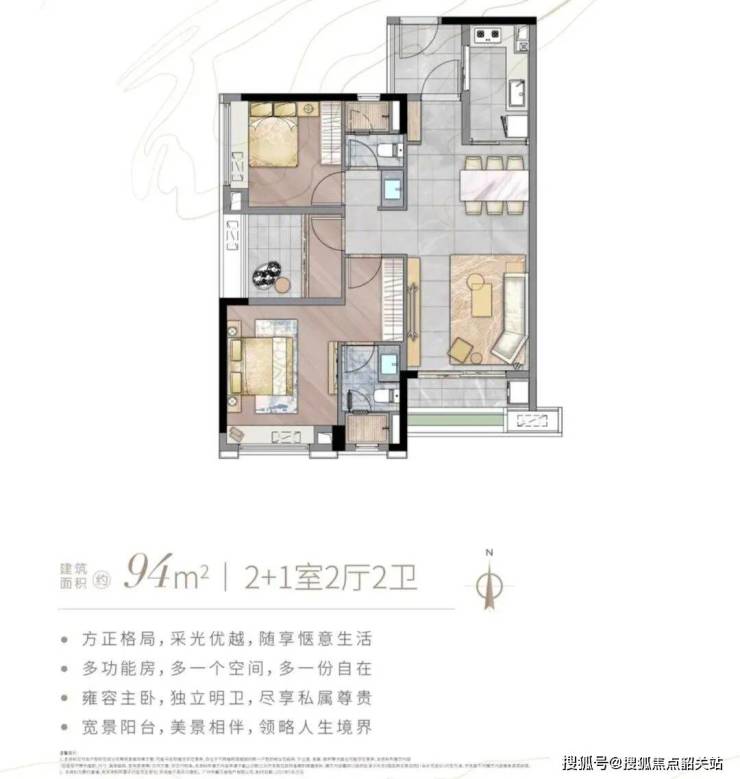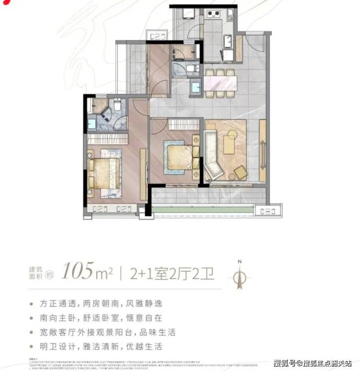 约105㎡四房两厅两卫:奢阔四房设计,5.6米宽景阳台,可揽四季美景;横厅设计灵活多变,适合三代同堂或对空间需求较大的家庭。