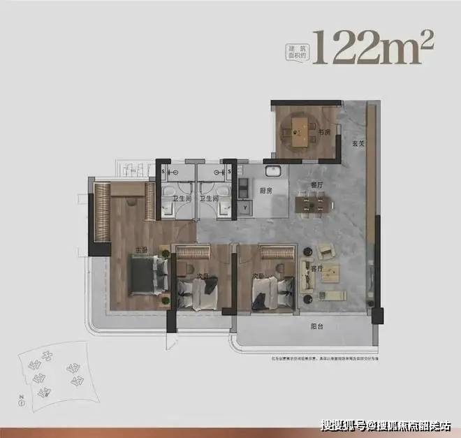 122㎡户型:约6.6M南向景观阳台 | 270°环幕瞰景主卧|多元化功能阳台