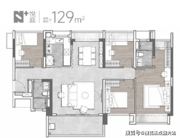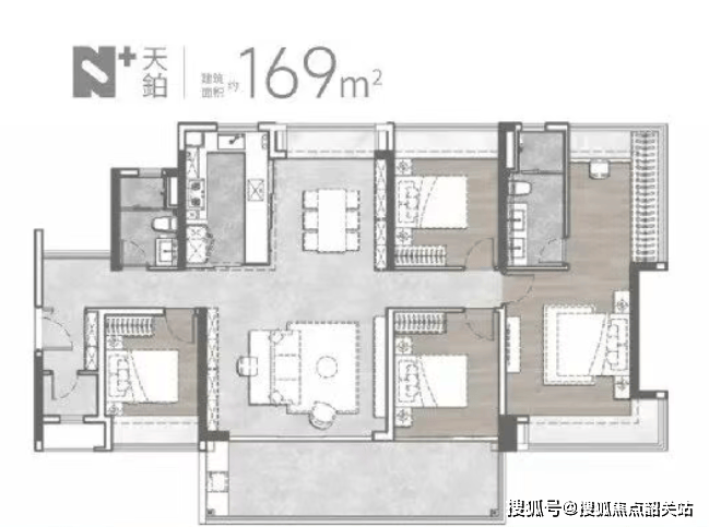 项目主打89~169m²跃级三至四房户型,设计上采用了LDKB互通布局,保证舒适通风采光及家庭成员之间的交流互动空间。特别值得一提的是,项目使用了新规后板块内采用的20%阳台建设比例,使得使用率直逼100%。