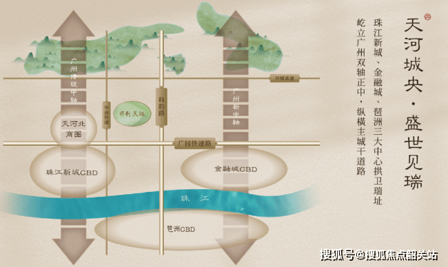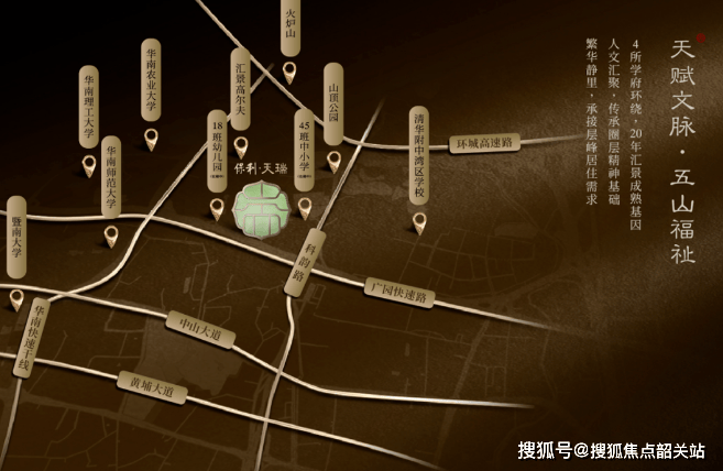 在广州楼市的发展版图中,天河始终是绕不开的核心,而五山—汇景这一带,更是天河少有同时兼顾生态、学府与高端居住氛围的成熟板块。保利天瑞正是落子于此,项目位于天河五山与汇景新城交汇区域,处在珠江新城与琶洲金融城两大中轴之间,向东链接金融产业,向南联动互联网与科创资源,向西直达老城核心,向北承接生态山体资源,是典型的“多核辐射型改善区位”。