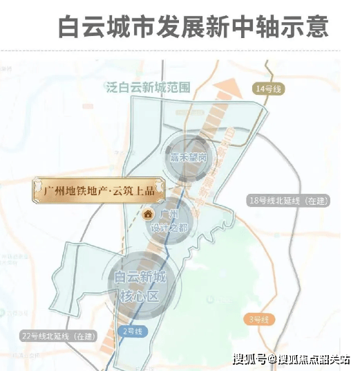 云筑上品位于广州设计之都中区板块,处于白云新城核芯位置,是区域重点发展的 TOD 综合开发项目。设计之都规划面积 2 平方公里,重点发展建筑设计、工业设计、时尚设计等产业及上下游集群,已建成 39 栋大楼、86 万平方米产业载体。