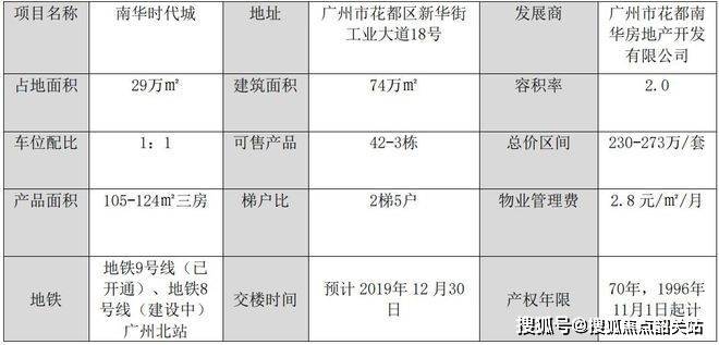 南华时代城位于花都区的南华时代城在售四期带装修【星銮】洋房组团单位,建面为105-124平三房单位,31层高,2梯6户设计,项目接受公积金贷款。