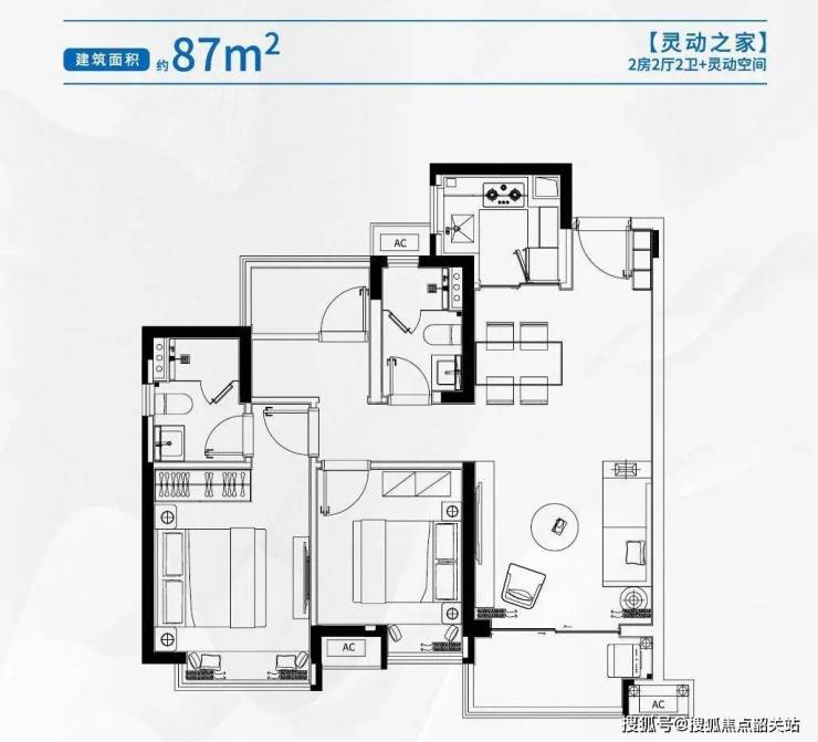 建筑采用点式布局排布,减少楼栋数量,提高楼间距,保证每一户的通风采光;