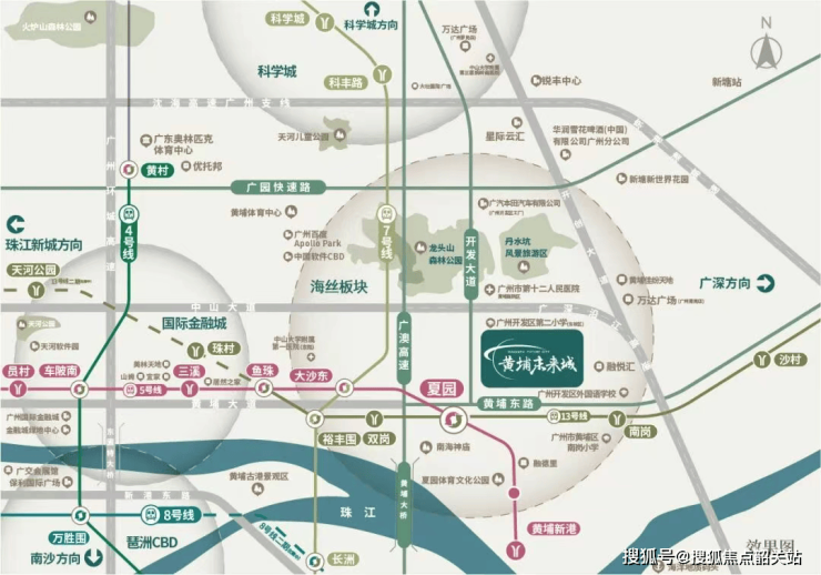 项目距地铁5号线与13号线交汇站——夏园站约1公里,步行15分钟或骑行5分钟可达,5号线可直达珠江新城、金融城,13号线贯通增城新塘,双线换乘覆盖广州东西主轴。自驾方面,紧邻黄埔东路、广深沿江高速及开发大道,1小时内通达广州核心区及深圳、东莞。片区内部正规划建设横一路、金竹山路等隧道,未来将实现丹水坑、沙步、南岗等组团高效互联。对于在珠江新城、科学城或增城工作的上班族而言,通勤时间可控,真正实现“高效出行+多睡半小时”的生活平衡。