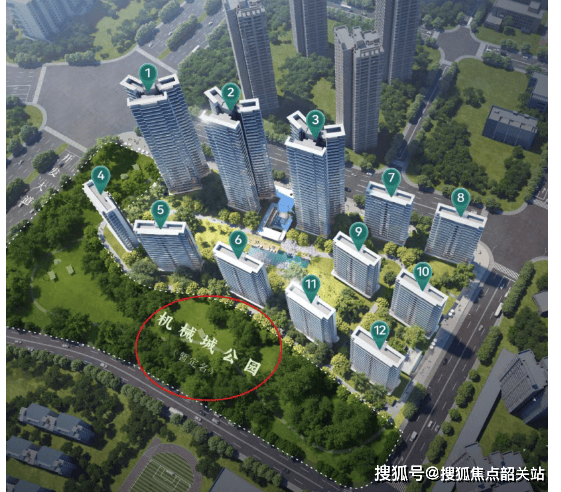项目位于黄埔南岗板块将军山片区,总规划建筑面积约200万㎡,其中计容住宅面积约85万㎡,整体容积率仅2.6,属低密宜居大盘。首期推出12栋住宅,包含3栋31–32层高层(2梯4户)与9栋约16层纯板式小高层(专梯专户、南北通透),在普遍超高层扎堆的老黄埔实属稀缺。项目采用“南低北高、围合点阵”布局,最大化采光通风与景观视野。虽地处工业区边缘,但通过自建山体公园与生态绿廊有效隔离外部干扰,营造“公园里的家”的居住体验。