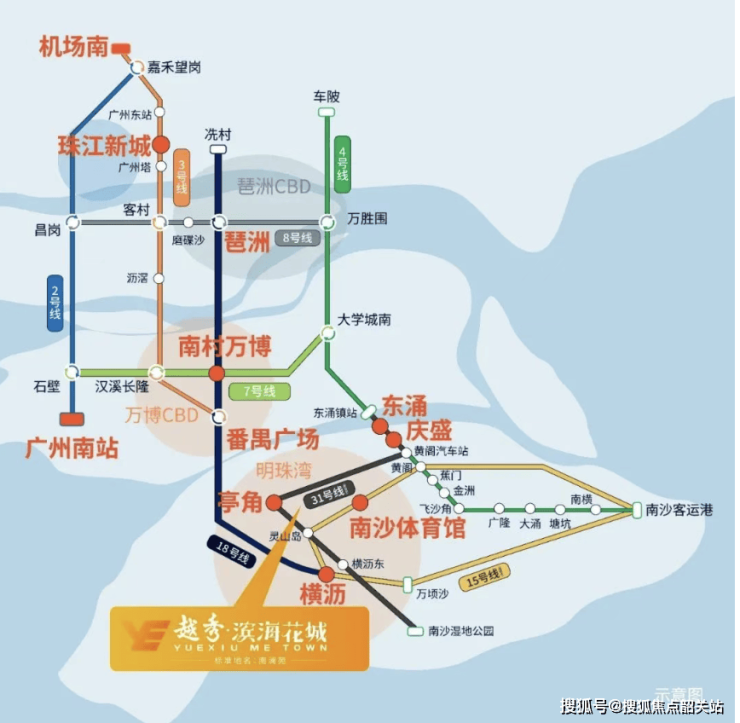 越秀滨海花城虽不直接拥有【区府+TOD】双核心,但处于区府辐射圈和未来地铁规划的潜在TOD影响范围内,具备类似的发展优势。项目约5KM内可达南沙区政府、政务服务中心等行政机构,能享受区府周边的行政、文化、商业等配套资源,区府的集聚效应为项目带来了一定的价值支撑。