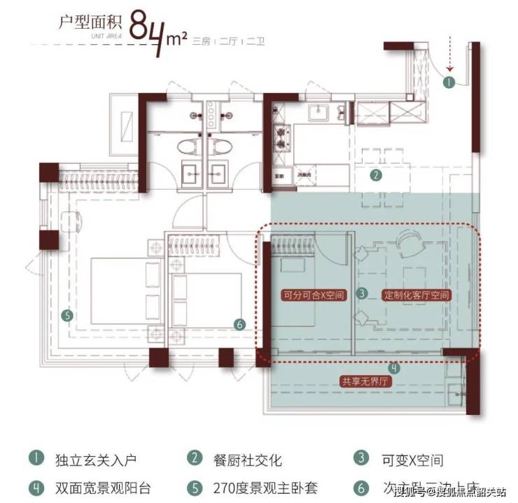 84㎡做到四开间朝南,107㎡主卧带270度观景窗