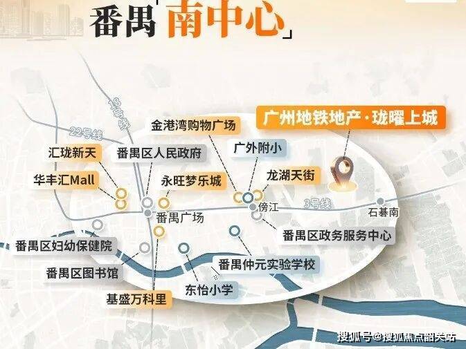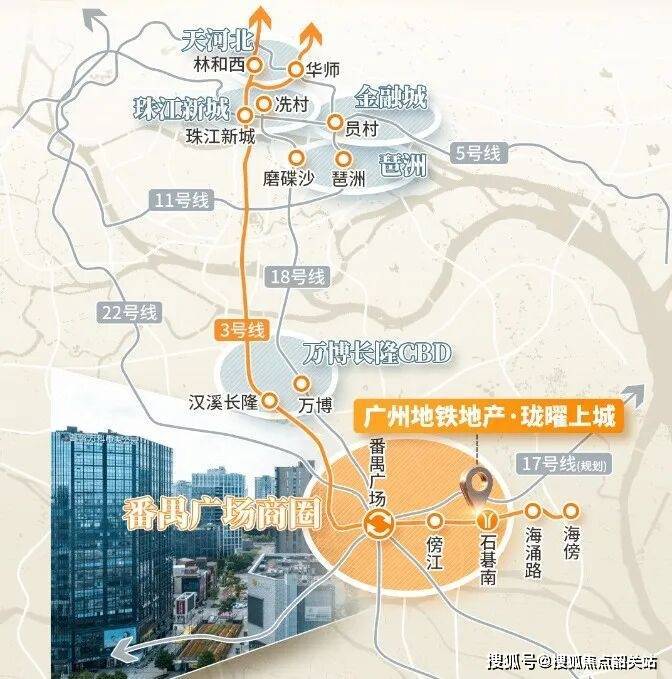 交通配套:紧邻地铁 3 号线东延线石碁南站,2 站直达番禺广场,3 站至万博,5 站至珠江新城