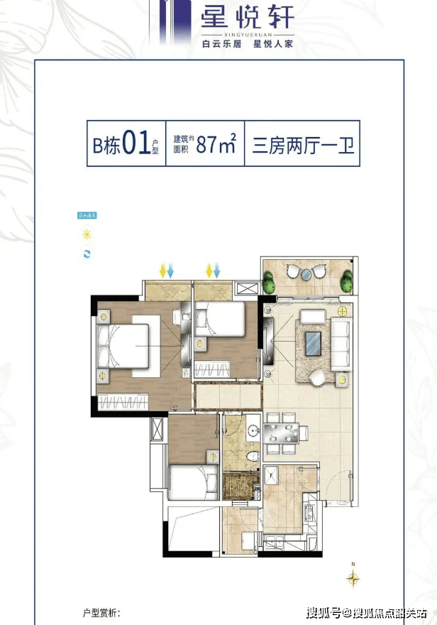 75㎡三房:紧凑实用,适合小家庭或首次置业者。