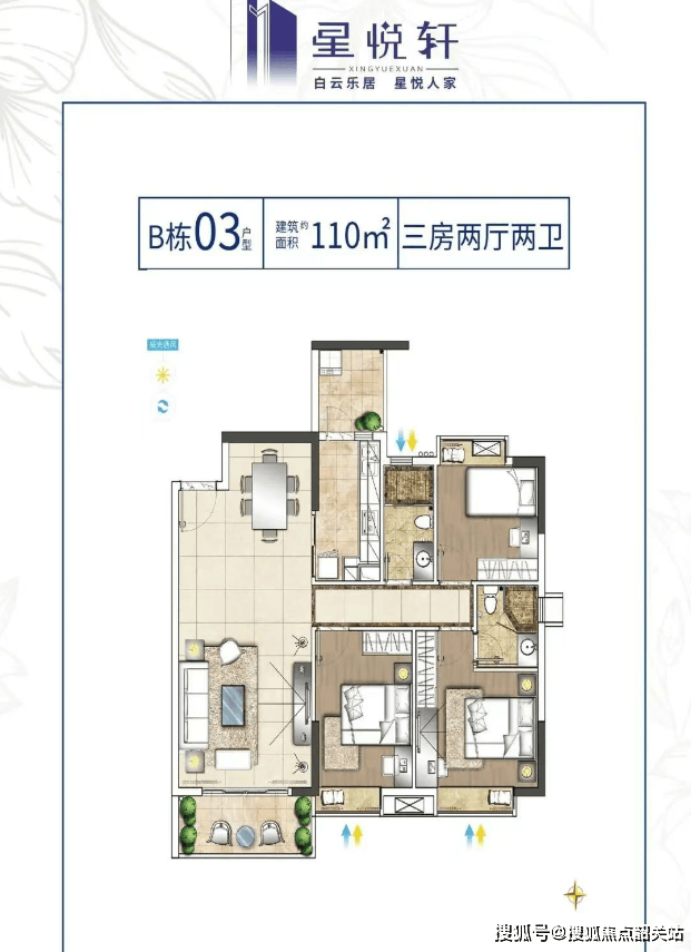 110㎡三房:空间宽敞,设计合理,适合追求舒适生活的家庭。
