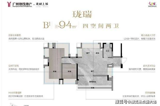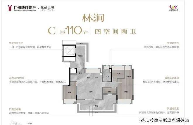 :独梯入户、四面宽朝南、南北对流超大方厅,享受大平层级别的生活体验。