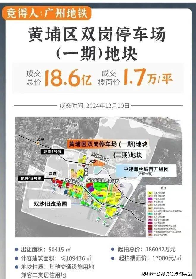 2024 年 12 月 10 日,广州地铁以底价 186042 万元拿下黄埔双岗停车场地块一期,成交楼面价约 1.7 万 / 平。项目分两期开发,总占地 17 万平方米,总建面约 38.26 万平方米 。一期占地 50415 平,总建面 109486 平,容积率 2.17,将建 14 栋住宅 + 1 所幼儿园,案名定为广州地铁珑岄上城,预计不久后正式面市。