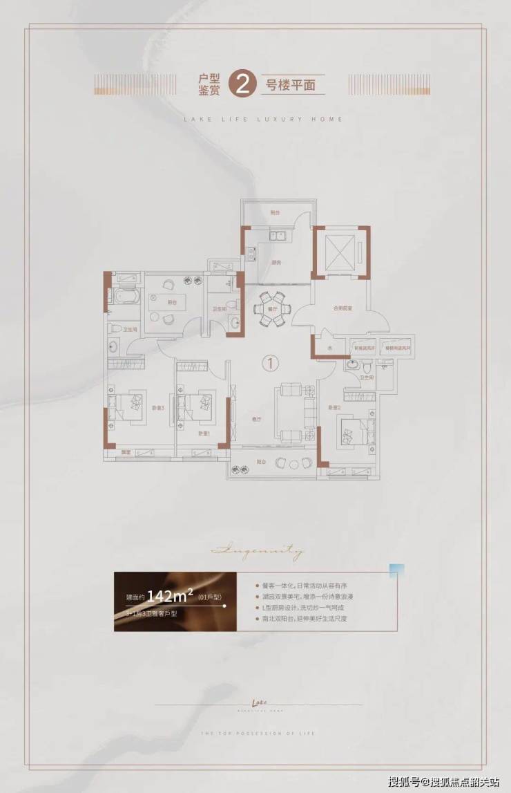 建面约142m²3+1房2卫精致户型