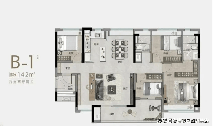 - 双台盆卫浴+明厨明卫,全屋自然通风