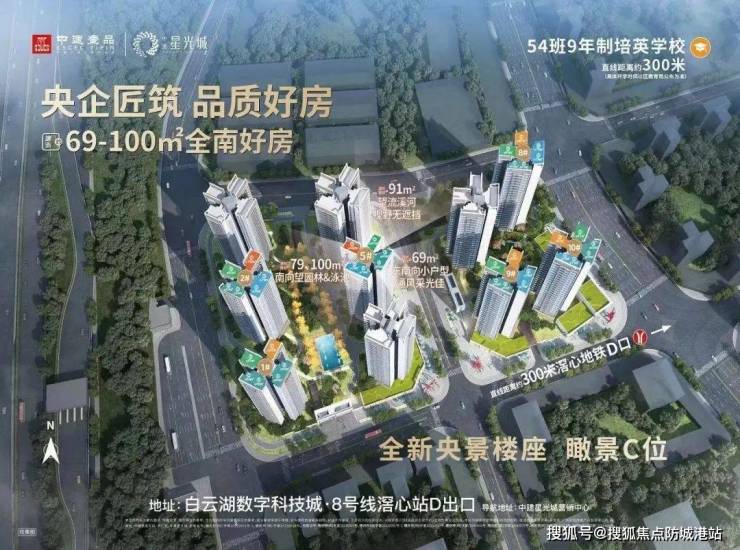 广州十四五规划明确将白云湖数字科技城打造为“珠江新城4.5倍规模”的科创核芯,中建星光城占据片区核心位置,距地铁8号线滘心站仅400米(高德实测),2站接驳白云新城,15分钟直达天河CBD。项目主打69-100㎡全南向户型,起价25000元/㎡,现推出限时98折优惠,售楼处电话:400-655-7089(开发商直营热线,中介勿扰)。