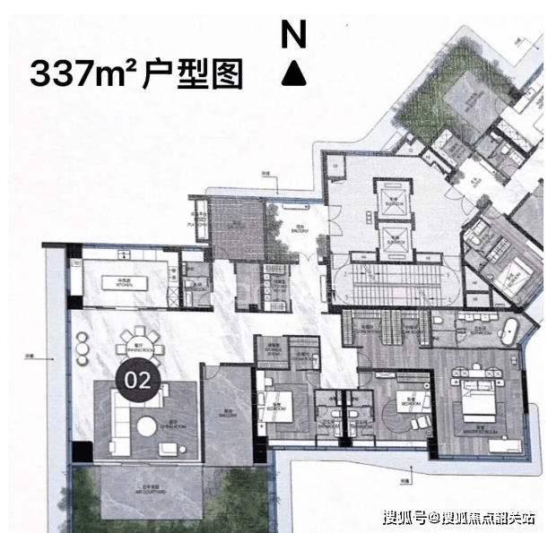 在高层大平层产品中,主要包含三种主力户型,分别面向不同规模的家庭结构。首先是建面约229平方米的入门级四房两厅三卫户型,总价门槛约为530万元起。该户型采用专梯专户设计,私享独立电梯厅,LDKB一体化大方厅设计让空间显得尤为开阔。6米挑高的空中花园全赠送,不仅增加了使用面积,更带来了极佳的采光与通风效果。双主卧套房布局有效避免了多代同堂居住时的动线交叉,提升了居住的私密性与舒适度。中高楼层的房源可以直望湿地公园景观,视野开阔,心旷神怡。其次是建面约240平方米的四房两厅三卫户型,总价约665万元起。该户型主打南北双露台设计,南向6米挑高空中花园面积超40平方米,全赠送。20米南向巨幕面宽搭配70平方米的社交大通厅,营造出宏大的家庭聚会空间。主卧面积超过35平方米,配备步入式衣帽间与独立卫浴双台盆,空间尺度感极佳,满足了高端家庭对奢华生活的追求。最后是建面约336平方米的五房两厅四卫楼王户型,总价约1070万元起。作为项目中的顶级产品,该户型拥有专梯专户、270度环幕视野,南向空中花园超50平方米全赠送,100平方米的超大社交方厅足以容纳各种高端社交活动。主卧套房面积超过80平方米,高楼层可享有无遮挡的湿地公园全景,完美适配终极改善的高净值客群。