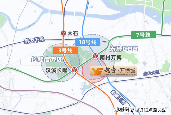交通是衡量一个区域价值的重要标尺。越秀万博和臻紧邻7号线与18号线交汇的南村万博站,步行约1.3公里可接驳地铁。其中,18号线作为广州的“速度之王”,一站直达珠江新城,极大地缩短了通勤时间;7号线则无缝衔接广州南站,方便跨区出行及全国范围内的商务往来。此外,项目周边汉溪大道、番禺大道等主干道纵横交错,形成“地铁+主干道”的立体交通网,让业主无论选择公共交通还是自驾出行,都能高效便捷地通达全城。