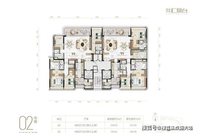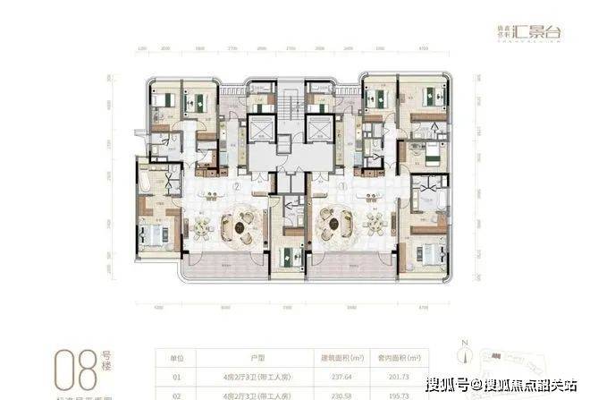 侨鑫·保利·汇景台提供多种户型选择,包括123至352㎡的三至五房设计,实用率约为82%-84%,满足不同高端家庭的需求。特别推荐的是240㎡南向大平层,其南向布局保证充足的采光与通风;而352㎡户型则以五房设计,空间宽敞奢华,适合追求极致居住体验的高净值家庭。