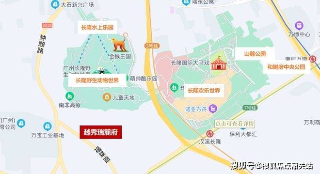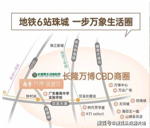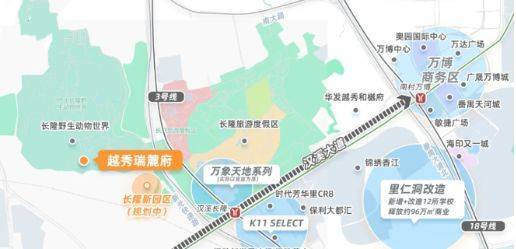 越秀瑞麓府位于番禺区长隆文旅区西南侧,项目北接长隆,西临钟顺路,可经汉溪大道、南大干线快速衔接万博CBD、琶洲与珠江新城等核心区域。从交通结构看,项目交通体系呈现“轨道+城市道路”双通道协同格局。