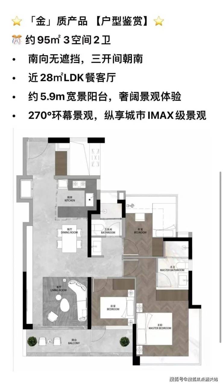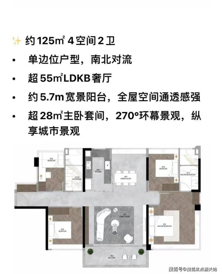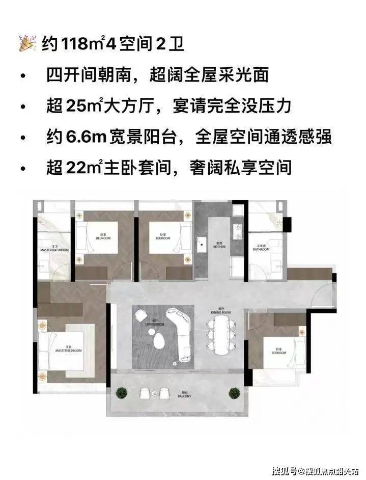 112㎡ 3+1房2厅2卫,两梯四户南向低密度,LDKB一体化设计,全屋80cm阔景飘窗升级。