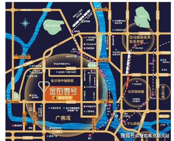 金铂壹号(又名万益广场)坐落于广佛交界核心腹地——佛山市南海区金沙洲板块,具体位于建设大道与环洲三路交汇处。这一区域虽行政归属佛山,却与广州白云、荔湾、越秀三大主城区无缝接壤,真正实现“一脚踏两城”。项目总建面高达68万㎡,是集购物中心、品牌酒店、商务办公与精品公寓于一体的超级城市综合体。自2013年拿地以来,历经多年开发,目前已形成成熟社区氛围,总户数约7000户,其中4500+户为广州籍业主,足见其对广佛双城客群的强大吸附力。更关键的是,项目地处金沙洲商圈C位,周边人流、物流、财富流高度汇聚,是广佛融合战略下不可多得的价值高地。
