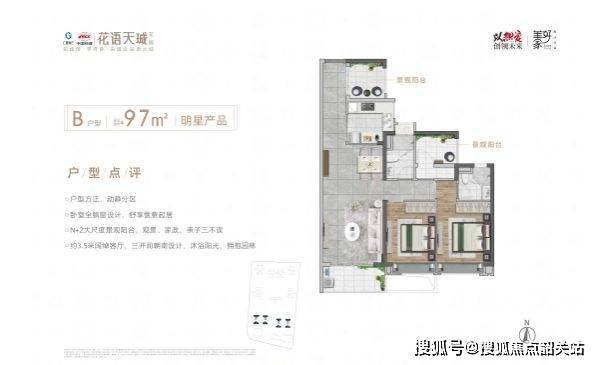 户型设计实用且多样。推出约 97㎡2 + 2 多功能空间,同等面积多一房,超 85% 使用率,双静动分离格局,满足不同生活场景需求。约 118㎡3 + 1 多功能空间,入户带玄关,增加居住私密性,兼顾舒适性与功能性,南北通透,约 7 米景观阳台连接客厅。约 137㎡3 + 1 多功能空间,约 7.5m 观景阳台,南北对流,阔绰主套带步入式卫生间,满足三代同堂居住需求。整体户型设计合理,空间利用率高,能满足不同家庭结构的需求。