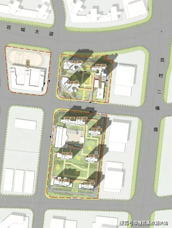 北地块:塔楼设计,共有3栋楼,B1栋47层、B2栋46层、B3栋45层,全部为全南向舒展T3/4楼型。
