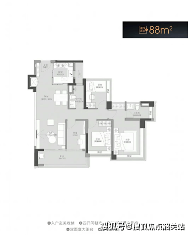 户型设计匠心独运,全盘主力户型为建面约 88 - 105㎡臻品四空间,户户朝南,最高可达 25% 阳台赠送率,88 平户型实现 3 + 1 四空间设计。88㎡的房子实得面积可达约 114㎡,实得面积增加超 120%,为购房者提供了宽敞舒适的居住环境,性价比极高。全南向搭配 4 - 4.5 面宽的设计,保证了良好的采光与通风,让居住空间更加舒适宜人。