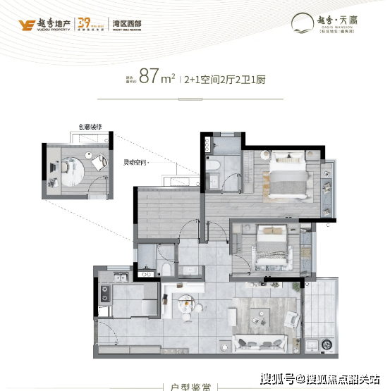 项目主力户型有【约 87㎡三房两卫】,是绝版望江三房,适合刚需上车;【约 104㎡四房两卫】望江极致四房,为改善优选;【约 125㎡五房两卫】瞰江通透格局,属王牌臻藏户型。户型定位刚需、刚改路线,设计中规中矩,打造 N + 1 空间,部分房间需业主自行封窗,且近 80% 户型可望花地河,多数单位为南向设计,接近户户朝南。